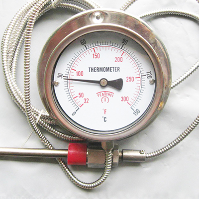 遠(yuǎn)傳雙金屬溫度計(jì)是將熱電阻或熱電偶的信號(hào)遠(yuǎn)傳功能與雙金屬溫度計(jì)就地指示功能相結(jié)合,它既能滿足現(xiàn)場(chǎng)測(cè)溫需求,亦能滿足遠(yuǎn)距離傳輸需求,遠(yuǎn)傳雙金屬溫度計(jì)可以直接測(cè)量各種生產(chǎn)過(guò)程中的 -40~+600℃范圍內(nèi)液體、蒸氣和氣體介質(zhì)以及固體表面的溫度測(cè)量。